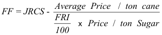 endation of the 1988 Mill’s Commission of Enquiry into the Sugar Industry, growers would, by now have been receiving returns from factories with a new set of terms such as FRI, JRCS, etc. If, as expected, the Prices Commission rules on the pricing formula to be adopted, then, by the end of this crop payment should be based on this new system of determining the value of cane delivered. The following provides a ready explanation of terms as well as simple, handy reference to the basics of this systemThe C Factor will vary with changes in fibreExample:At fibre content of 14%, C = 0.9584At fibre content of 18%, C = 0.9408