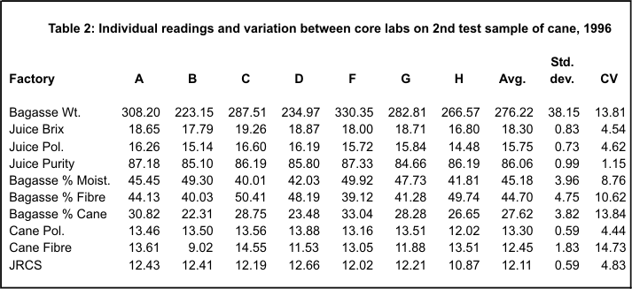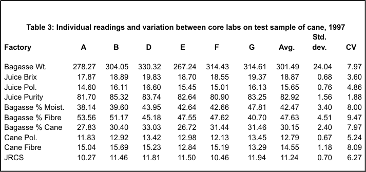 Given the natural variability within cane samples, the tests show the core labs to be maintaining acceptable levels of accuracy and precision in cane testing. The industry may therefore be reassured that testing gives a fair approximation of cane quality.